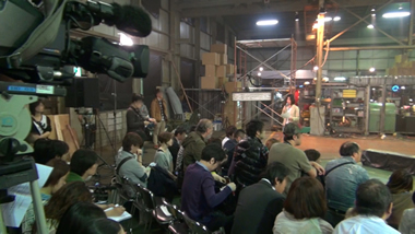 まだかまだかと陣取る大勢のマスコミの皆さん。 | |